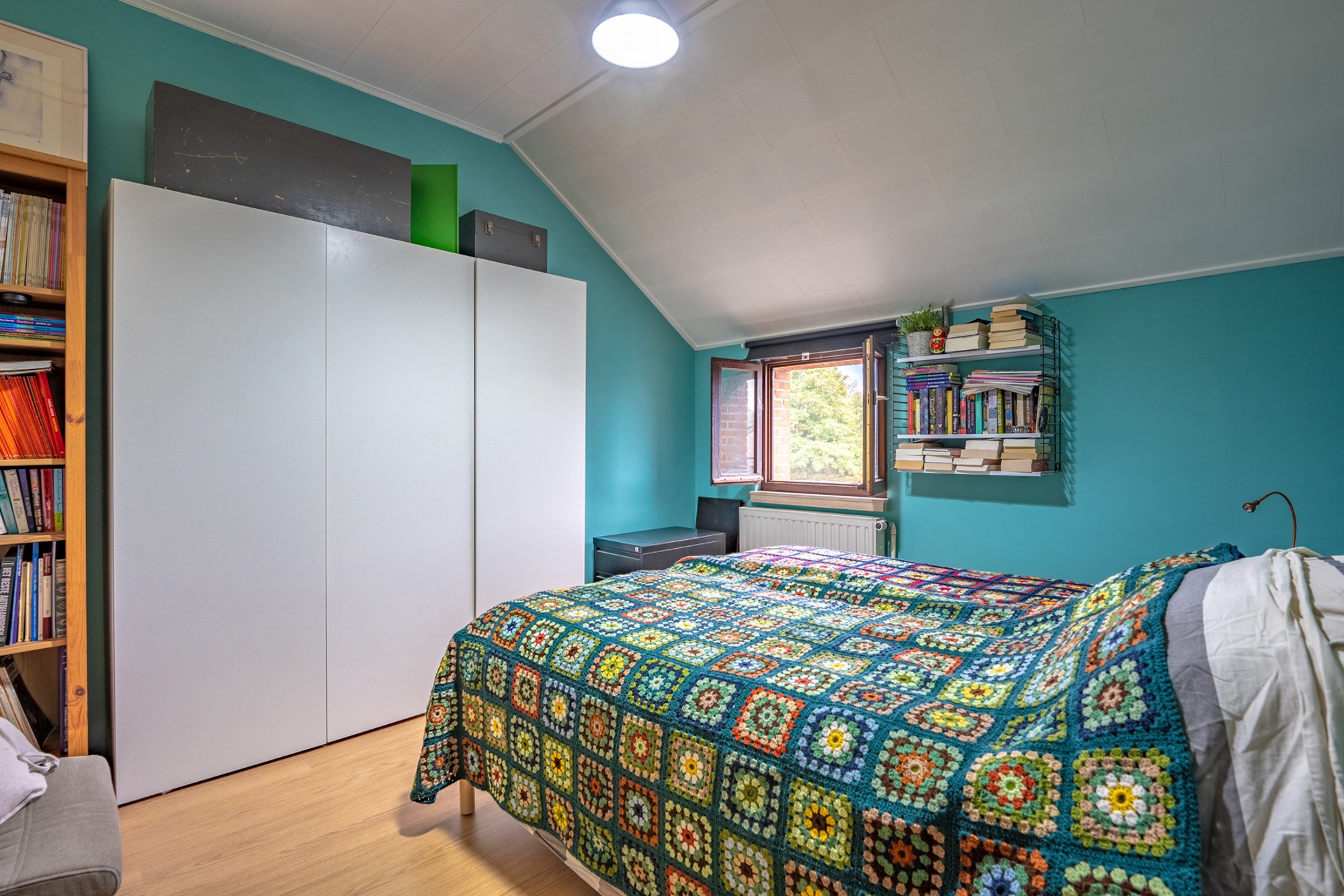De zolderruimte kan mits enkele aanpassingen ingericht worden als slaapkamer, bureau of hobbyruimte.